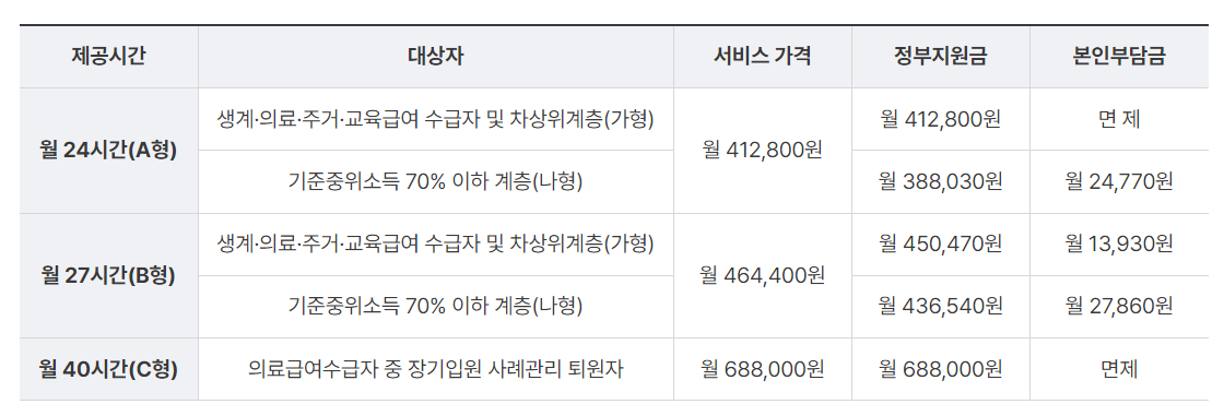 제공인력 : 만 18세 이상으로 「노인복지법」에 따른 요양보호사 자격 취득자