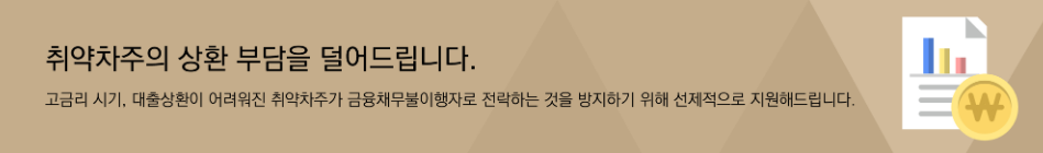 📍 참고로 취약계층에 대한 신용회복위원회의 채무조정 지원이 강화되는데요. 500만 원 이하 소액 채무를 1년 이상 연체한 기초수급자나 중증장애인이 1년간의 상환유예 이후에도 갚지 못할 경우 원금 전액을 감면하는 제도도 있으니 확인하시기 바랍니다.