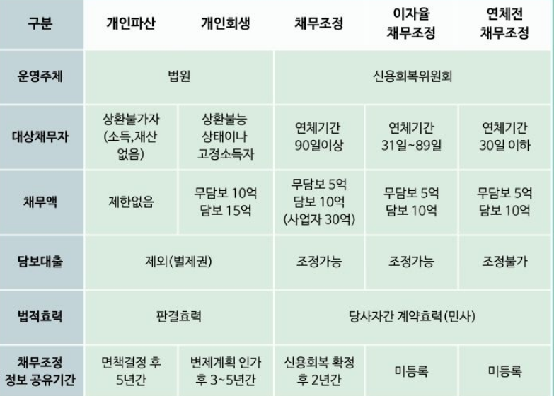 개인채무조정제도 종류