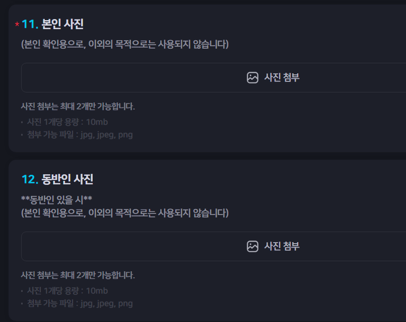 본인 사진 및 동반인 사진도 첨부해야 하니 참고하세요~