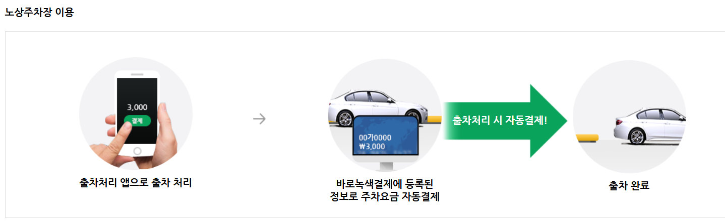- 자동 결제 : 등록된 차량 번호를 통해 주차장 출차 시 정차 없이 요금이 자동으로 결제됩니다.