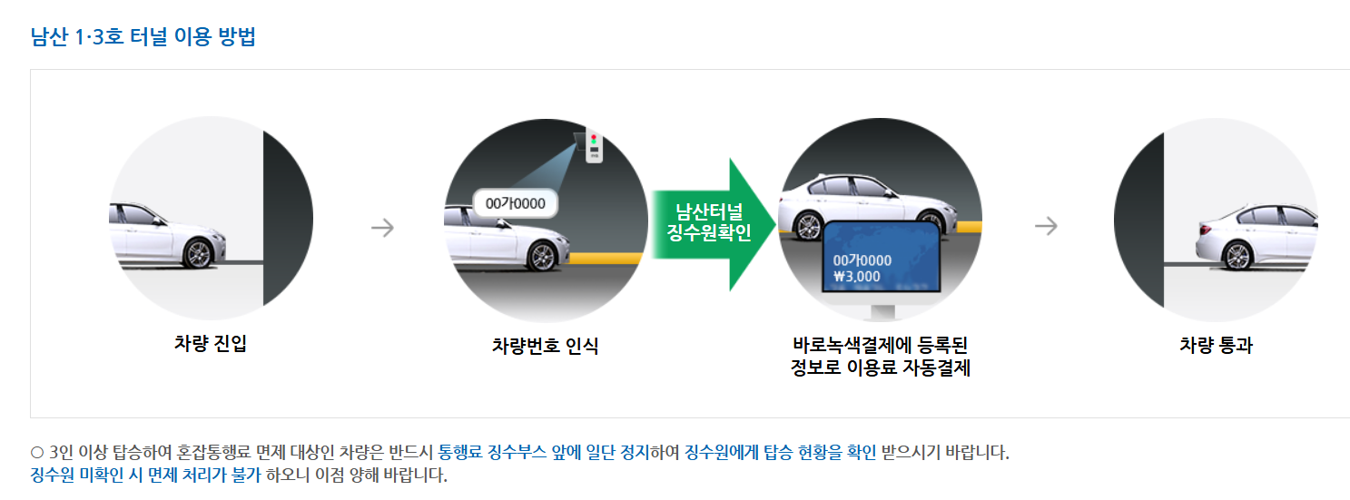공영주차장이나 남산 1,3호 터널을 이용하면 별도의 정산 없이 자동으로 요금이 결제됩니다.