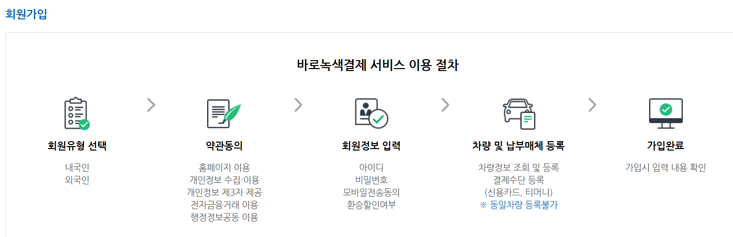 가입하기를 클릭후 이동하셔서 회원가입 하시고 차량번호와 결제할 신용카드 또는 체크카드를 등록하시고 이용하시면 됩니다.