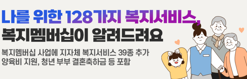 '24년 12월부터 맞춤형 급여 안내(복지멤버십) 가입자 대상으로 지방자치단체가 자체적으로 실시하는 39종의 복지서비스를 추가 안내하고 있습니다.
