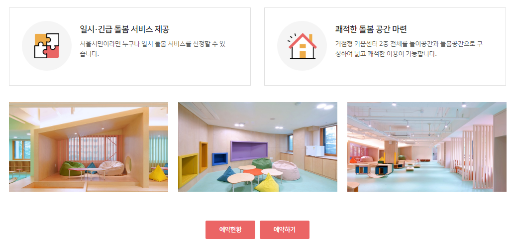 놀이 돌봄 서비스를 신청하면 보호자 없이 아이를 한 회차 돌봐준다. 갑작스러운 육아 공백이 생겼을 때 꼭 이용해 보세요