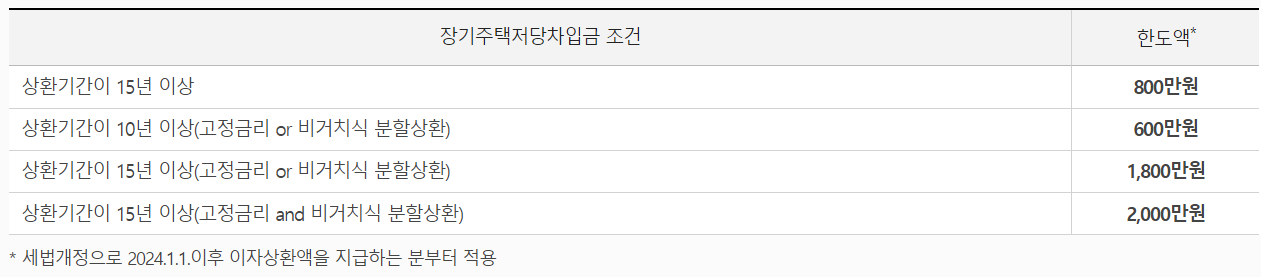 *세법개정으로 2024.1.1.이후 이자상환액을 지급하는 분부터 적용