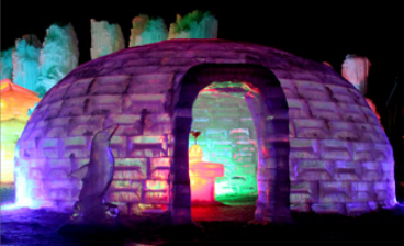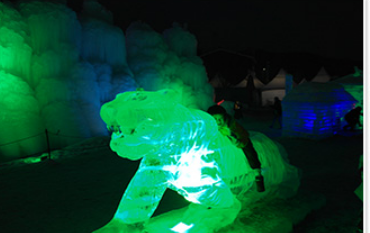 이곳에서는 직접 이글루(얼음집) 안에 들어가 볼 수 도 있고, 다양한 얼음 조각 작품을 감상할 수도 있어요. 특히 야긴이 되면 조명이 켜져서 더욱 환상적이 분위기를 연출한답니다.