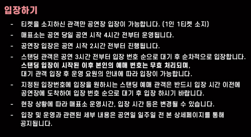 - 반송이 확인되지 않은 티켓은 현장에서도 수령하실 수 없으며, 공연 관람 및 환불이 불가합니다.
