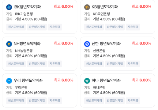 청년도약계좌도 은행별로 상이하기 때문에 꼭 확인하시고 조건이 좋은곳으로 선택하시기 바랍니다.