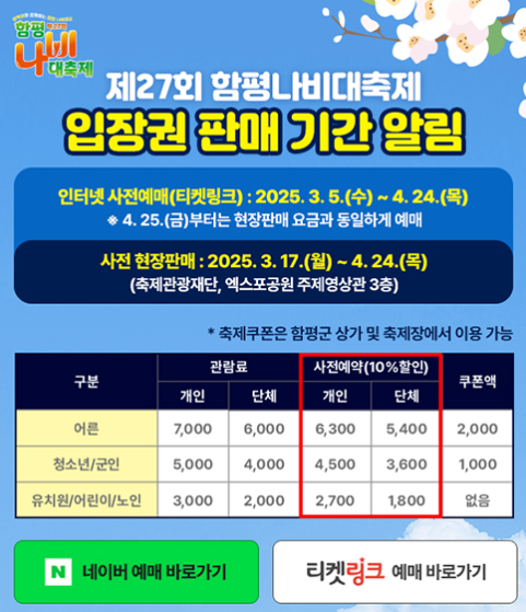 함평나비 대축제 가실 분들은 아래 티켓링크 예매 바로가기를 클릭하셔서 예매후 입장하세요