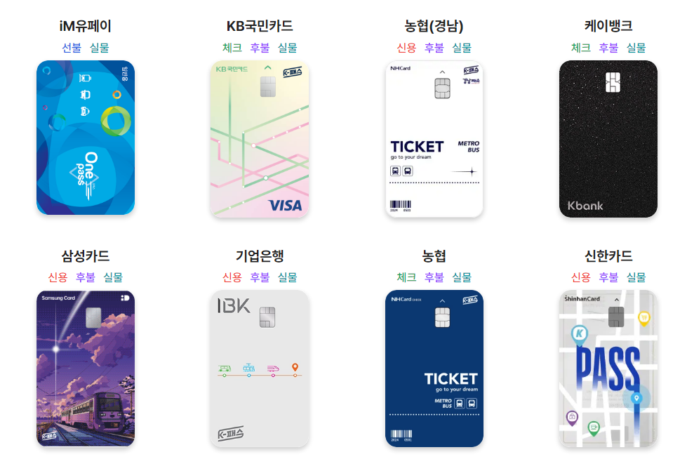 - 신규이용자 : K-패스 누리집, 모바일 앱 또는 11개 카드사 누리집에서 원하는 교통카드 상품을 골라 이용할 수 있음